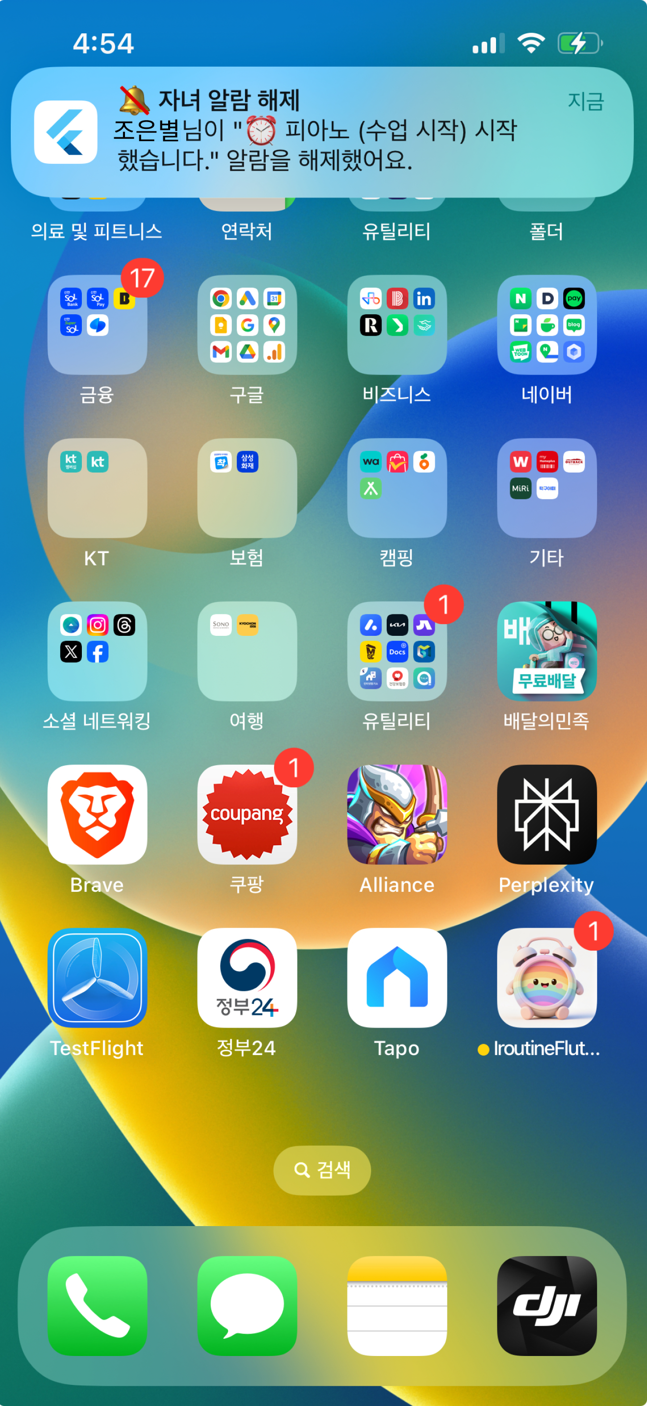 - 아이가 알람을 실제로 눌렀을 때 부모 폰으로 알림 전송