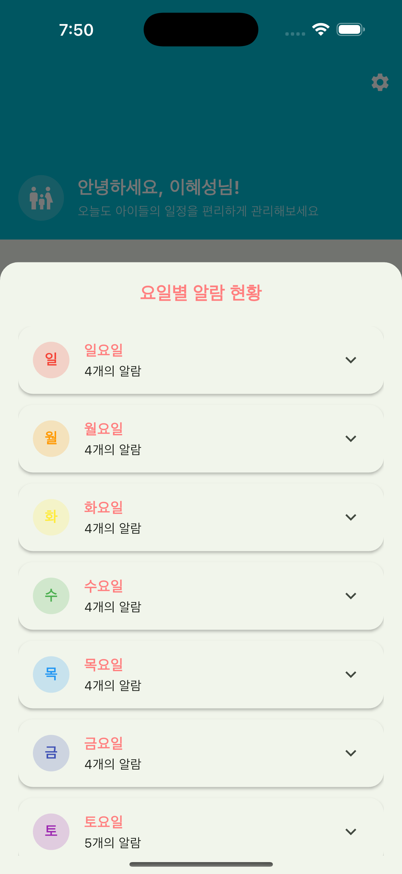 - 아이는 당일 또는 주간 일정만 간단히 확인